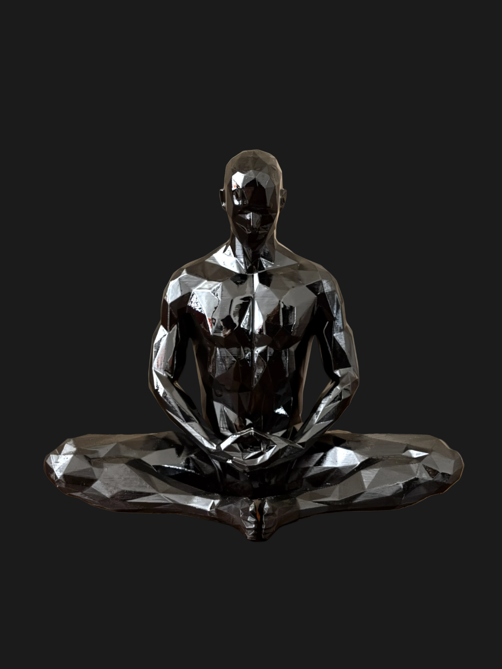 Dhyan captures the essence of meditation through a contemporary, faceted human form seated in perfect stillness. Its geometric surfaces reflect light subtly, creating depth and quiet movement while maintaining a sense of balance and serenity.