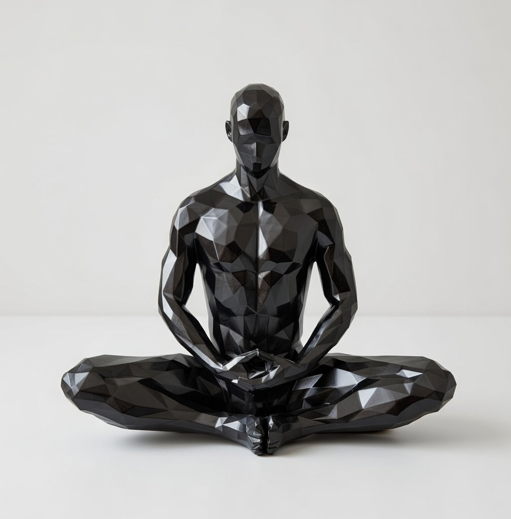 Dhyan captures the essence of meditation through a contemporary, faceted human form seated in perfect stillness. Designed to evoke mindfulness and clarity, Dhyan works beautifully as a centerpiece on console tables, shelves, or meditation corners. It brings a grounding presence to contemporary spaces while maintaining a strong artistic identity.