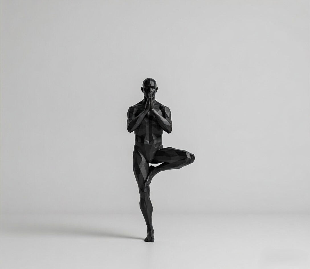 Eka captures the essence of yogic discipline—where stillness and motion coexist in perfect harmony. The poised one-legged stance reflects physical control and mental clarity, transforming an ancient practice into a contemporary art form.